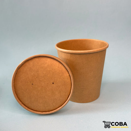 Vaso contenedor kraft con tapa biodegradable 16 oz